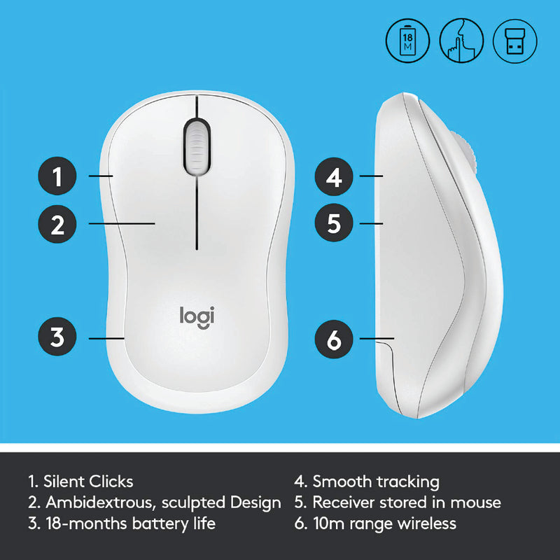 M221 is compatible with Windows®, macOS, Chrome OS™ and Linux® and works instantly when you plug the USB receiver into your computer or laptop. The receiver also provides a strong, reliable connection within up to 10 meters.