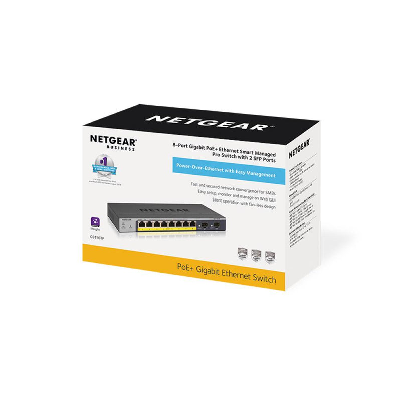 NETGEAR 8-Port PoE Gigabit Ethernet Smart Switch (GS110TP) - Managed with 8 x PoE+ @ 55W, 2 x 1G SFP, Desktop